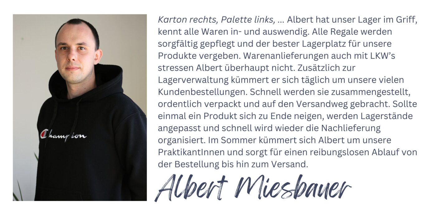 Es freut uns, dass du gerade diese Zeilen liest und dich für die Herkunft deiner Bestellung, der Produkte oder einfach über die Leute interessierst, die deine Bestellung zusammenpacken.