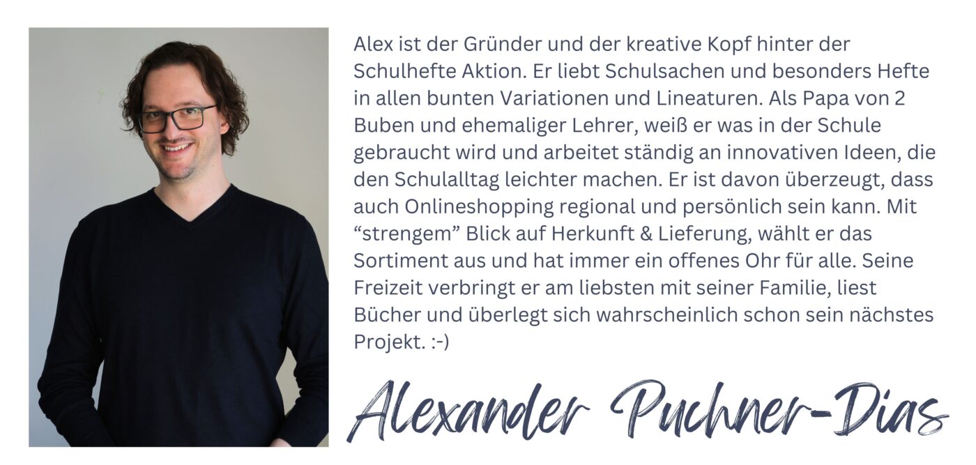 Durch Beschränkung unseres Produktsortiments ist es uns möglich, einen Einkauf am Schulstart stressfrei, ressourcenschonend und ökonomisch sinnvoll zu gestalten. Als Unternehmen sparen wir Material, Lagerkosten und Transportwege, um Eltern und LehrerInnen Schulhefte und Schulsachen zu einem ungewöhnlich günstigen Preis anbieten zu können. In unserem Sortiment findet man bewährte Marken, Start-Ups und Newcomer von denen wir überzeugt sind.
